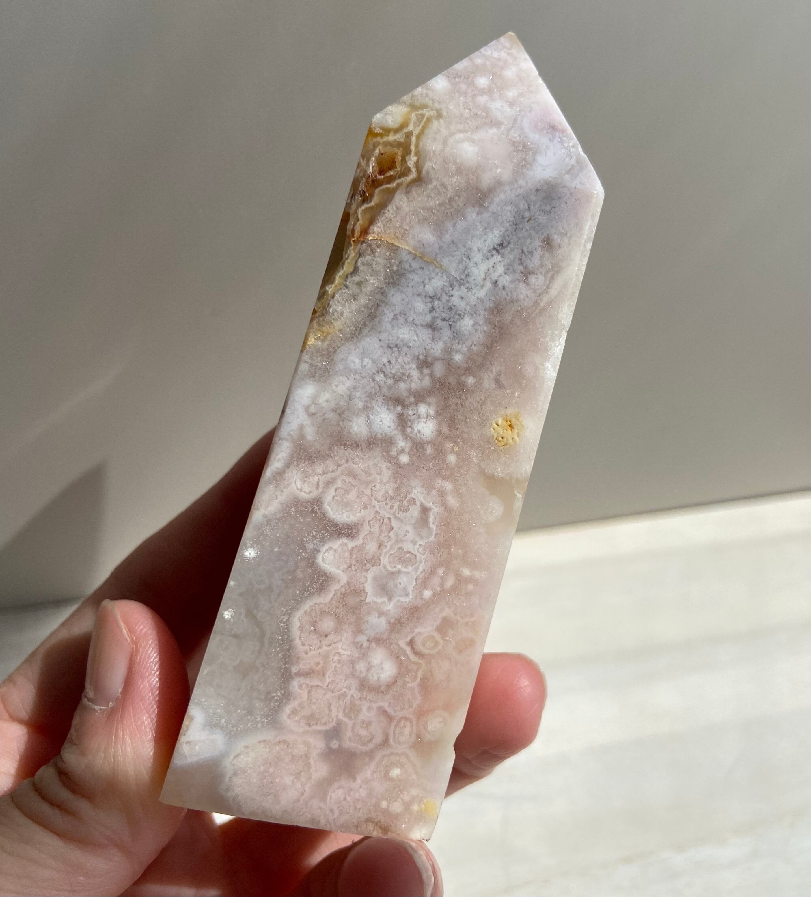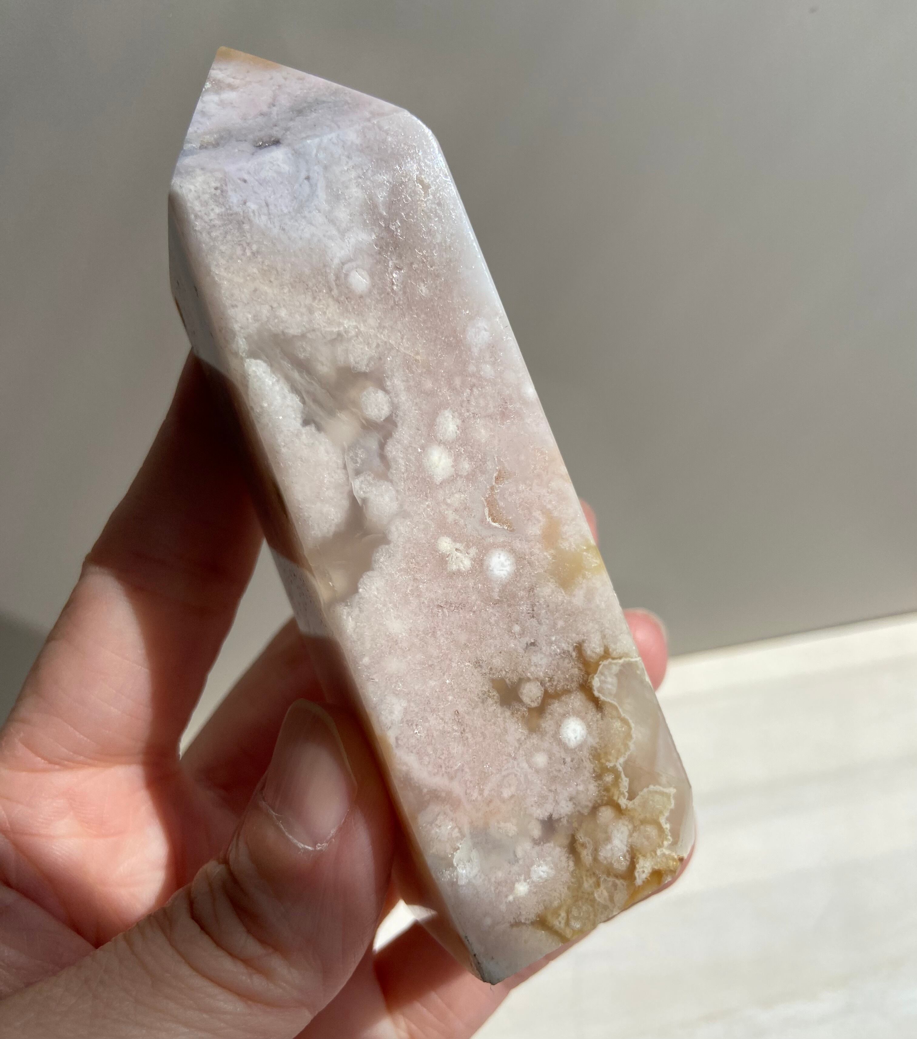 ピンク色のやさしさと、アゲートが持つ安定・守護の力をあわせ持ち、