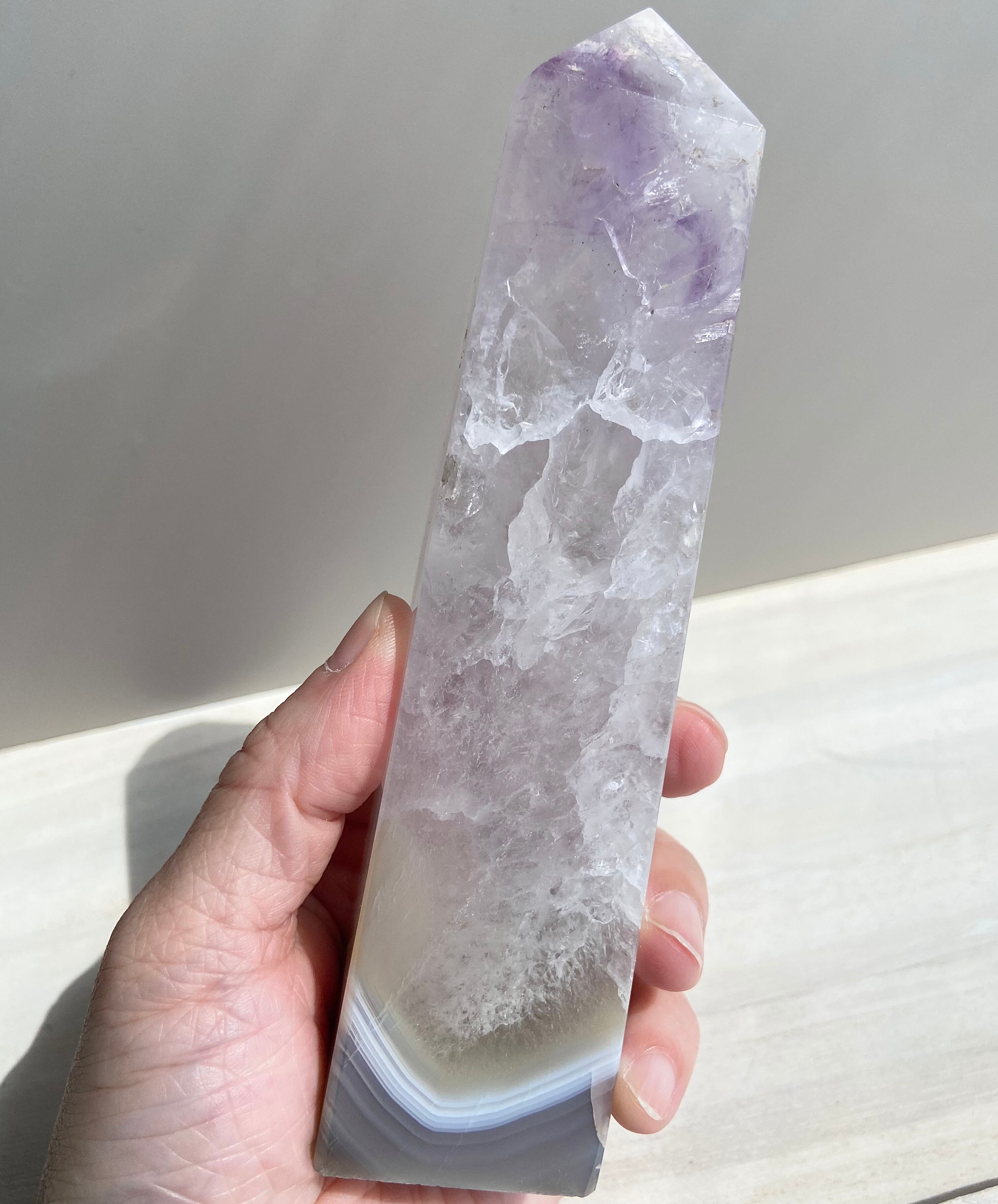 アゲート特有の縞模様と、アメジストの透明感+紫色が他にない天然の