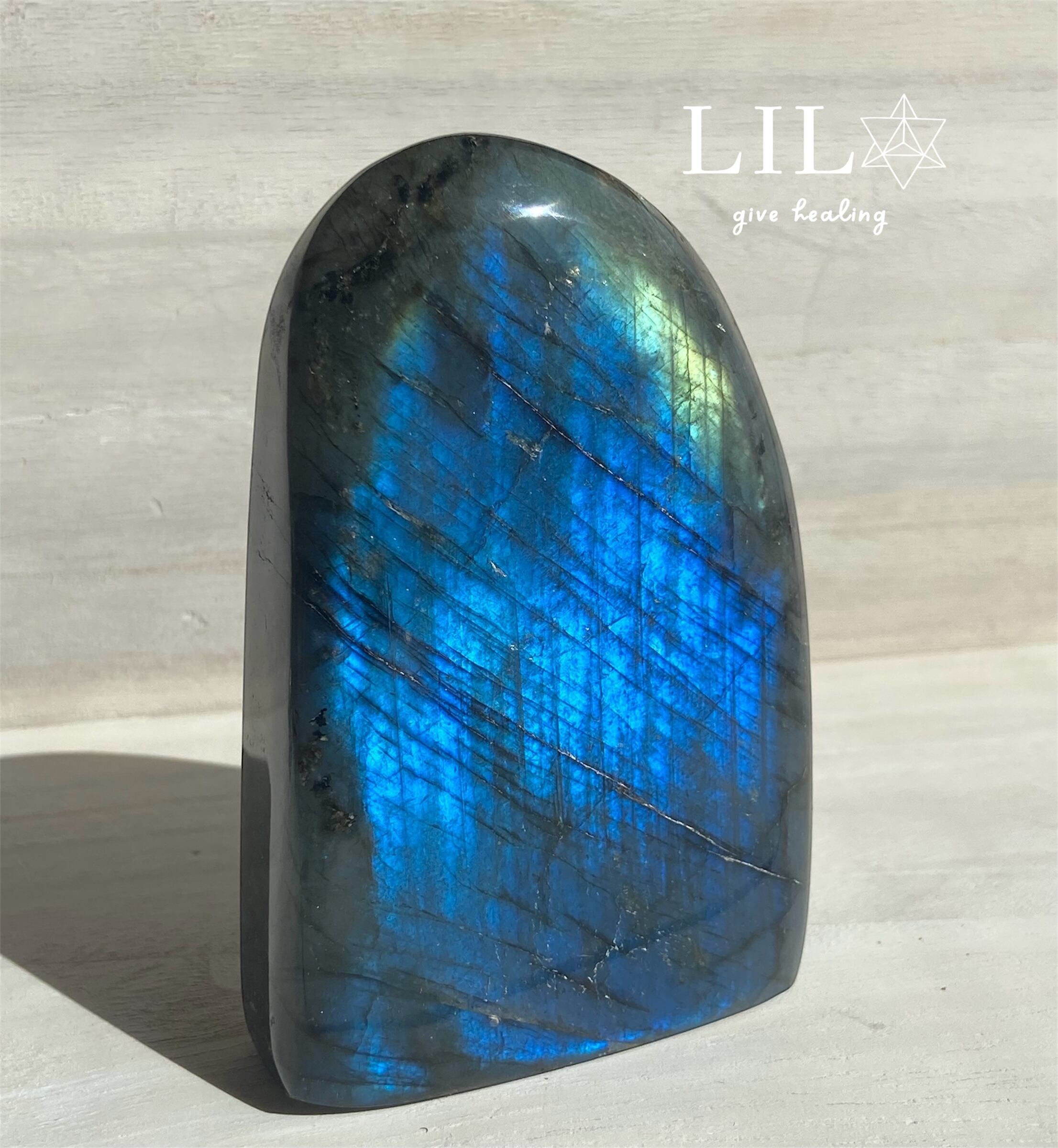 多彩なシラーをもつラブラドライトのフリーフォームです。