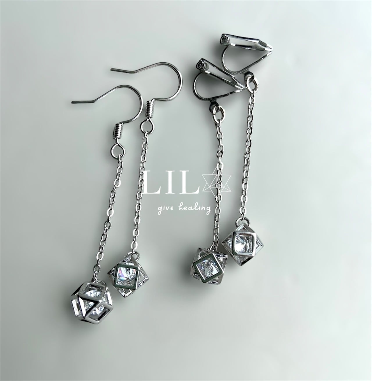キューブの中にジルコニアを閉じ込めたデザインのピアス・イヤリングです♡