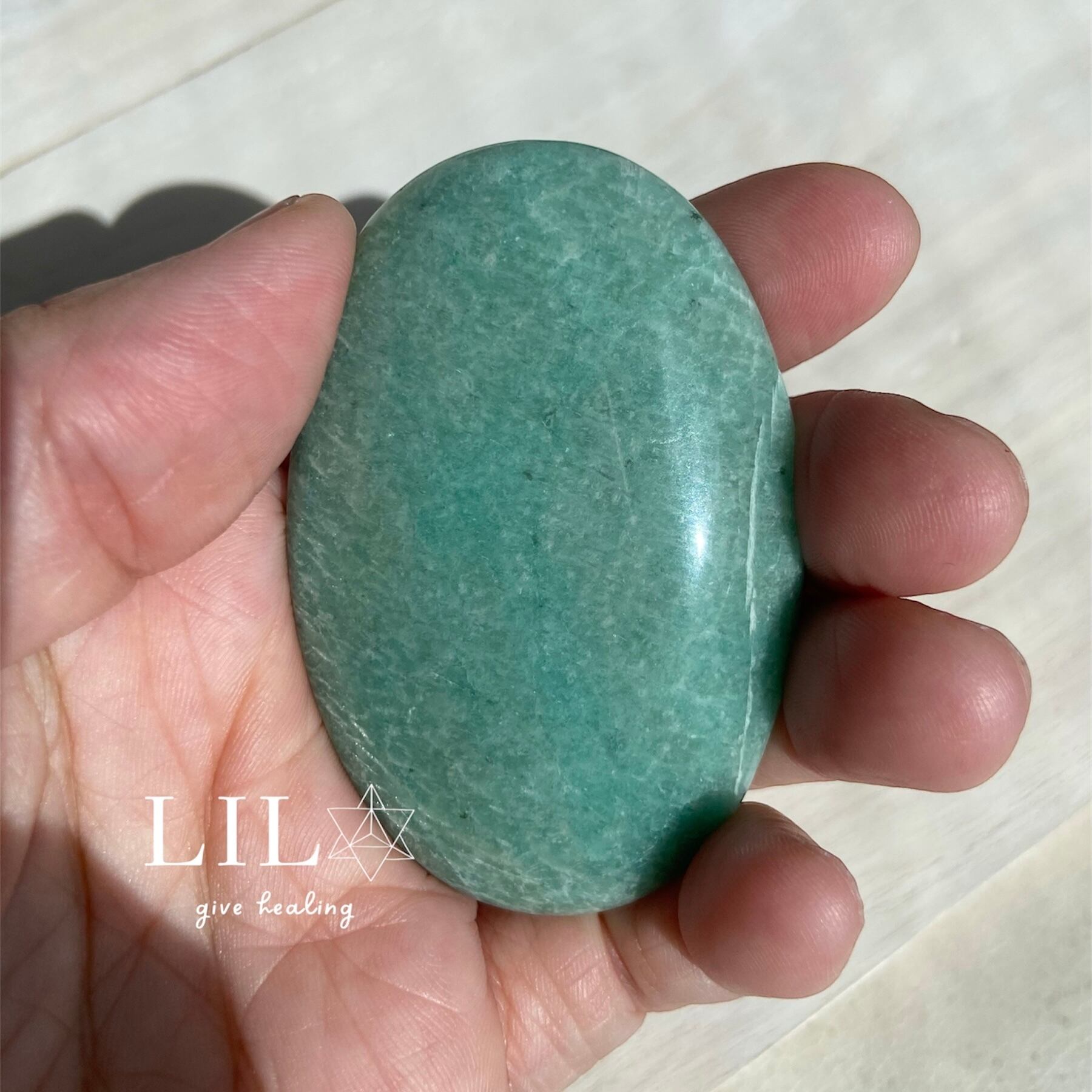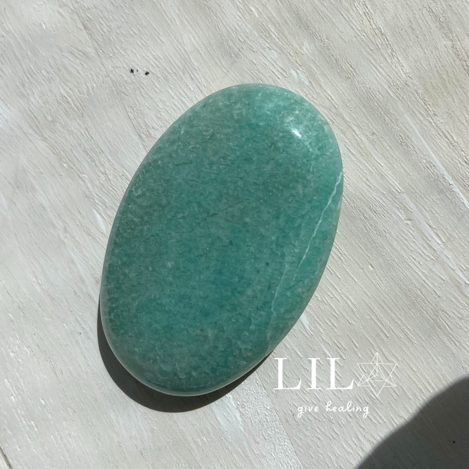 優しいブルーグリーンの発色が爽やかな印象のアマゾナイトパームです。