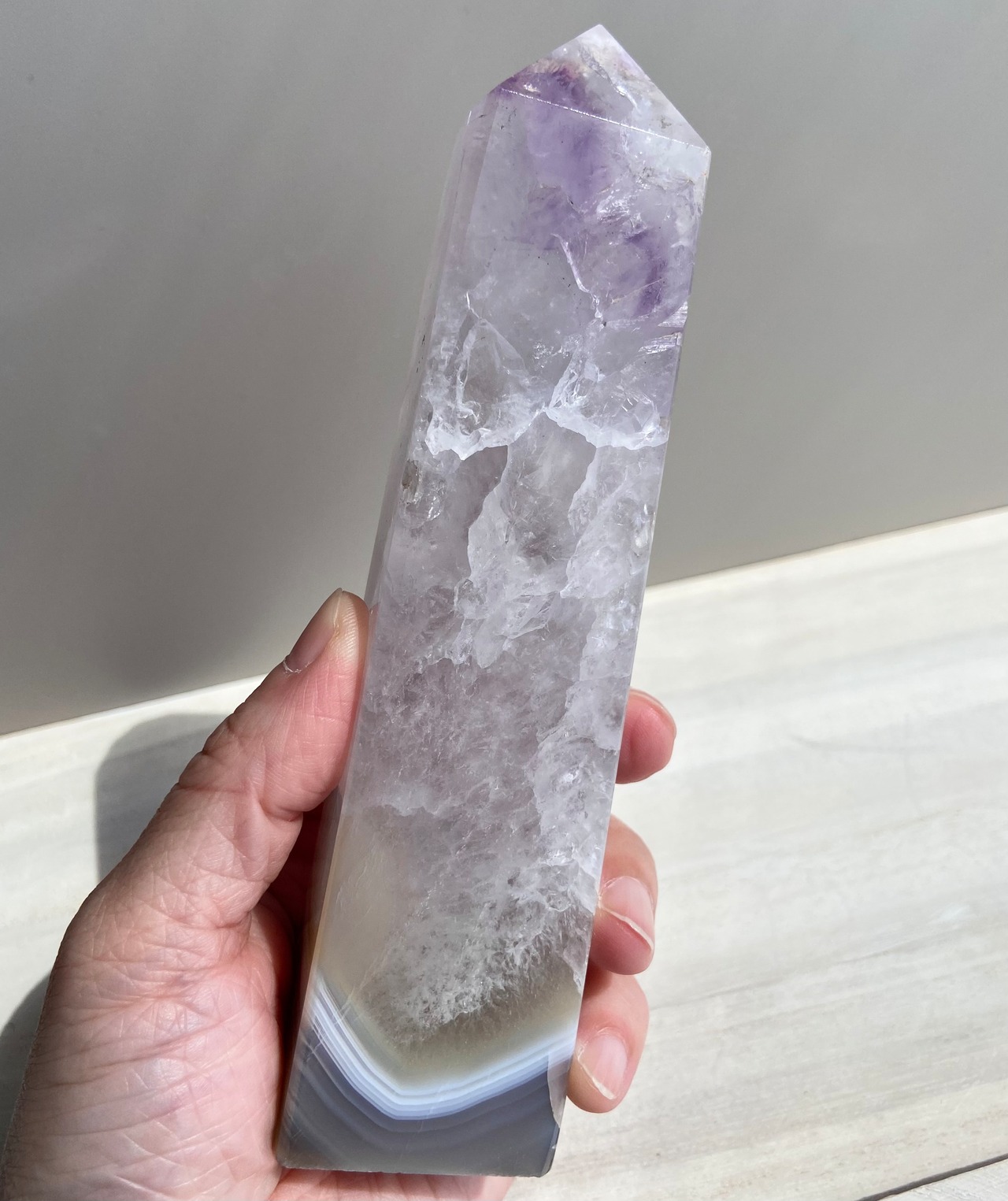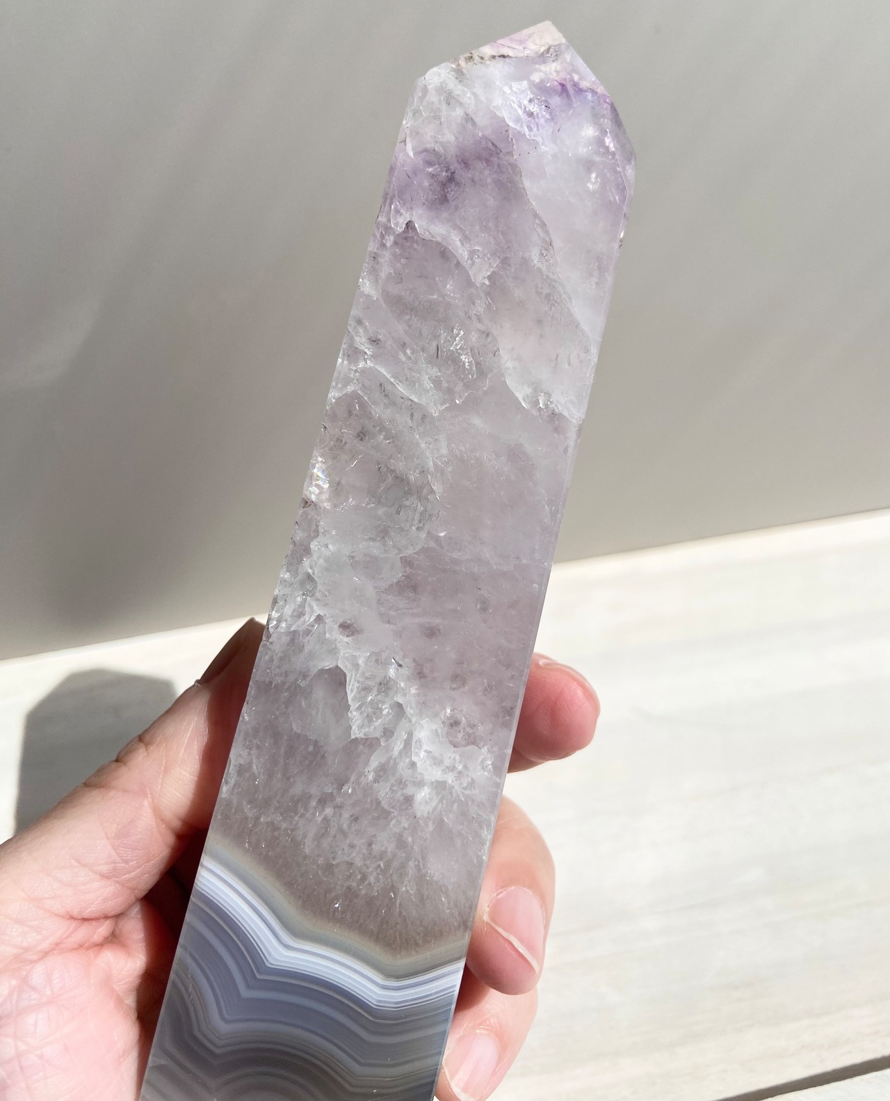 アゲート特有の縞模様と、アメジストの透明感+紫色が他にない天然の